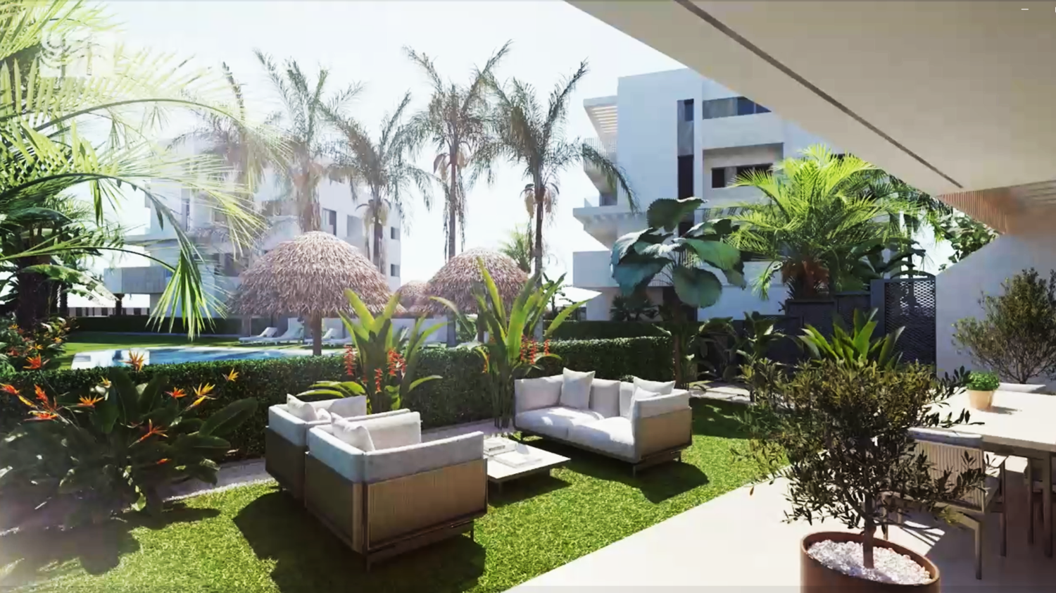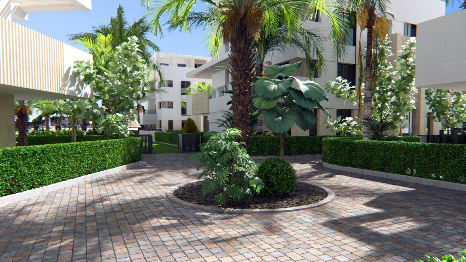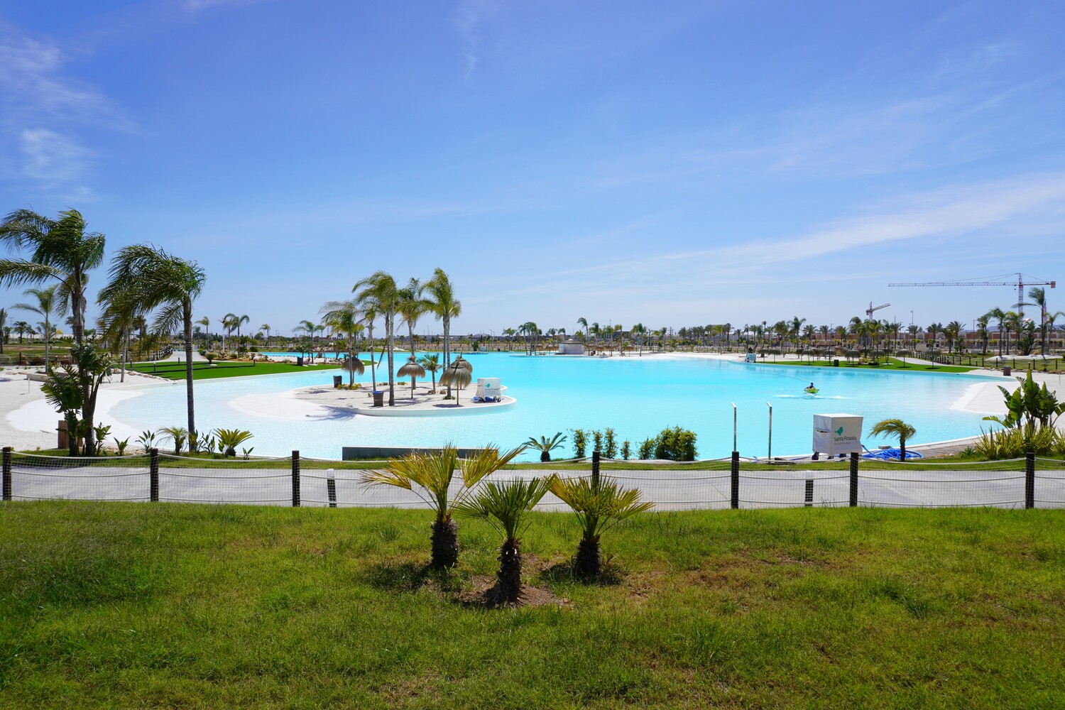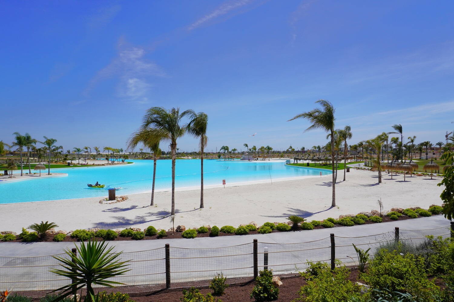 This beautiful and impressive resort with spacious ground floor apartments and first floor apartments is being built near Los Alcazares near the Mar Menor in the province of Murcia. The resort is located in a closed urbanization where the houses are built around a central park. A real eye-catcher is the huge lagoon, the largest artificial swimming pool in Europe, which is cleaned according to the latest sustainable filter technology, so that less chemicals, energy and water are used. The lagoon has 2 islands, a large beach, Beach club and hiking trails. The resort is also equipped with a very large variety of trees and plants that have been laid out in a natural way. At the resort itself there are various sports facilities such as kayaking, sailing, golf, tennis and a children's playground. At the popular Mar Menor, an inland sea which is separated from the Mediterranean by a headland, you can practice various water sports such as surfing, kayaking, sailing and swimming. The water is always warmer than the Mediterranean Sea and only 7 meters at the deepest point. A very pleasant area with beautiful beaches, various harbors and nice eateries. Hikers and bird watchers can enjoy the nearby natural park "Salinas de San Pedro del Pinitar". Golf enthusiasts can head to Calera Mar Menor Golf & Spa Resort just 1 km away. For a city trip you can visit lively Murcia and Cartegena.