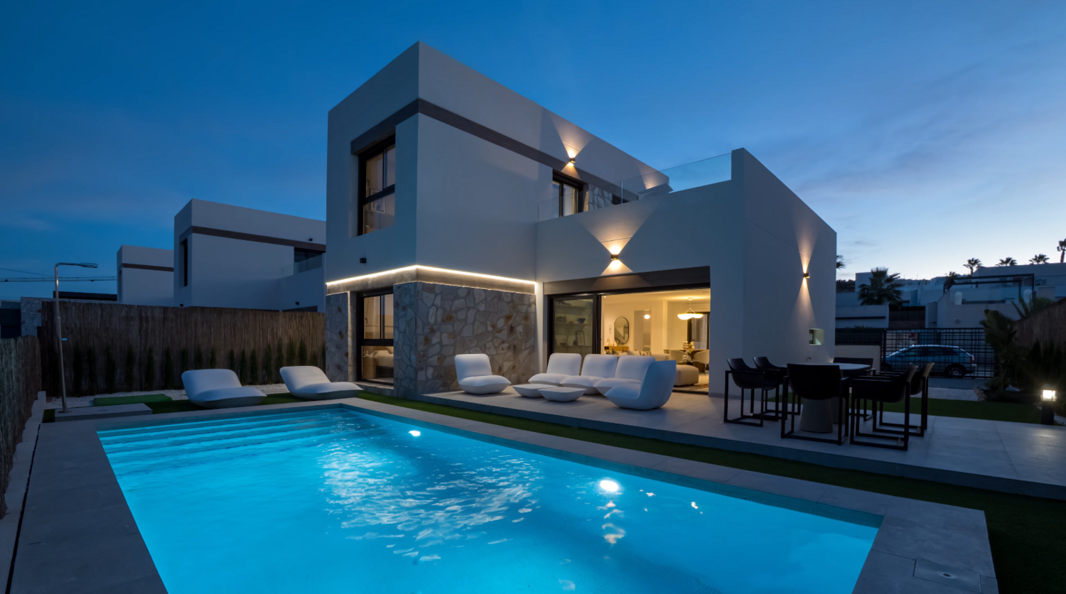 Clés en main – Profitez-en immédiatement ! Ces élégantes villas, sublimées par de magnifiques éléments en pierre naturelle, s'étendent sur deux étages et offrent un séjour lumineux avec cuisine ouverte et un vaste jardin. Une allée privée et une piscine rafraîchissante complètent cet espace de vie extérieur. Situées au sein du prestigieux La Finca Golf Resort, elles se trouvent à seulement 600 mètres du parcours de golf vallonné et du club-house surélevé.