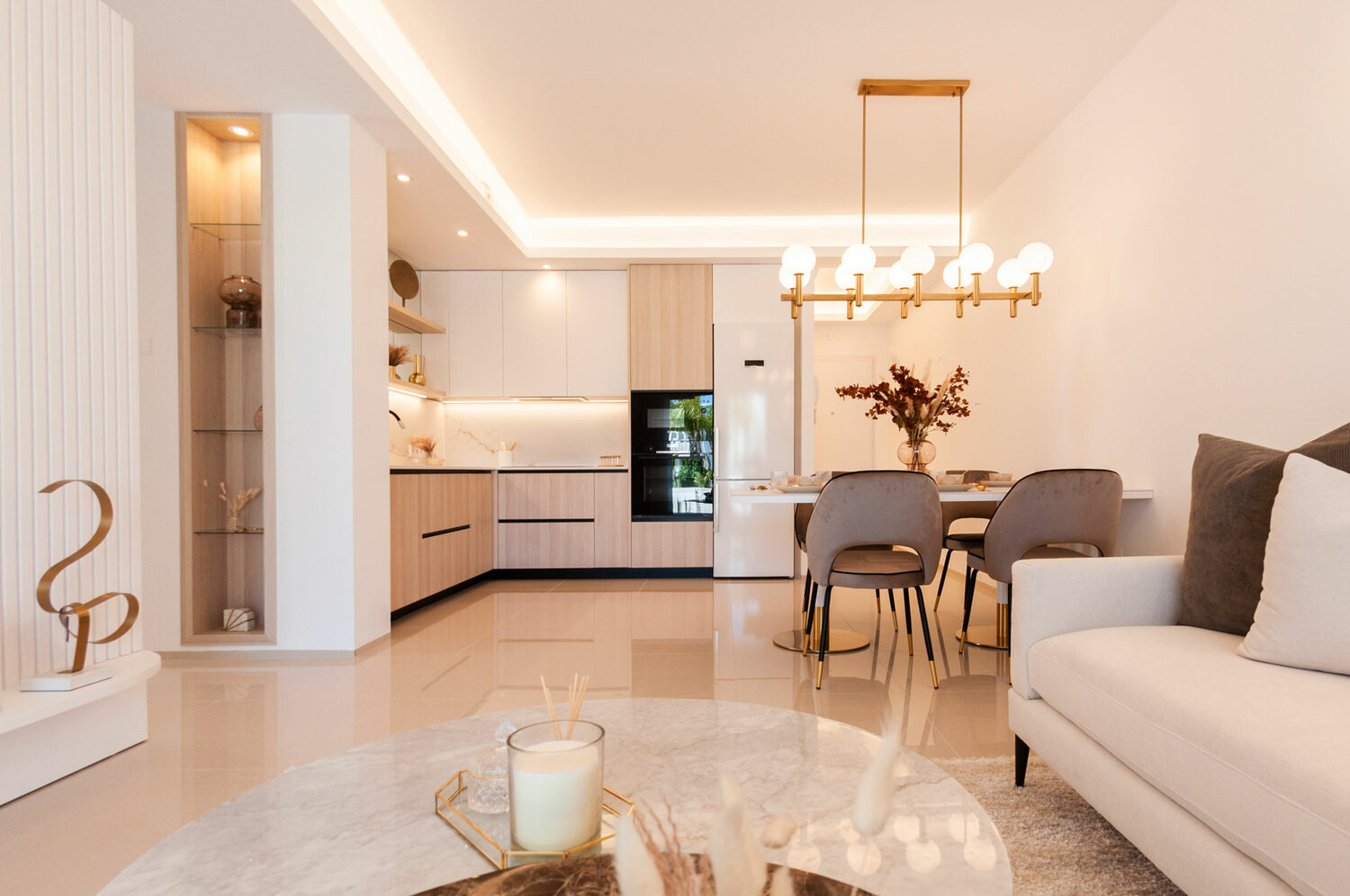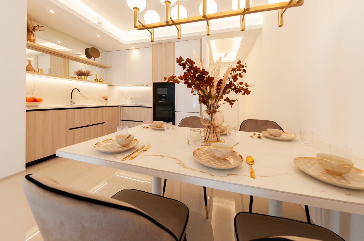Deze in moderne Mediterrane stijl vormgegeven Penthouses met 2 of 3 slaapkamers en 2 badkamers met vloerverwarming waarvan 1 badkamer en suite zijn gebouwd op een kleinschalige afgesloten urbanisatie. De appartementen zijn op een hoek gebouwd waardoor er veel lichtinval is. Het woonoppervlak is 86 m2 en 113 m2. Het solarium inclusief een bergruimte en een Pergola is maar liefst 80 m2 en 98 m2. Er zijn ook nog 2 balkonterrassen. De met zorg aangelegde binnentuin met mooie palm- en olijfbomen heeft een gemeenschappelijk zwembad. Het kwaliteitsniveau van deze Penthouses ligt hoger dan gemiddeld, er is gebouwd met hoogwaardige materialen waardoor de woningen een zeer bijzondere uitstraling hebben. Zeer geschikt voor permanente bewoning of verhuur.